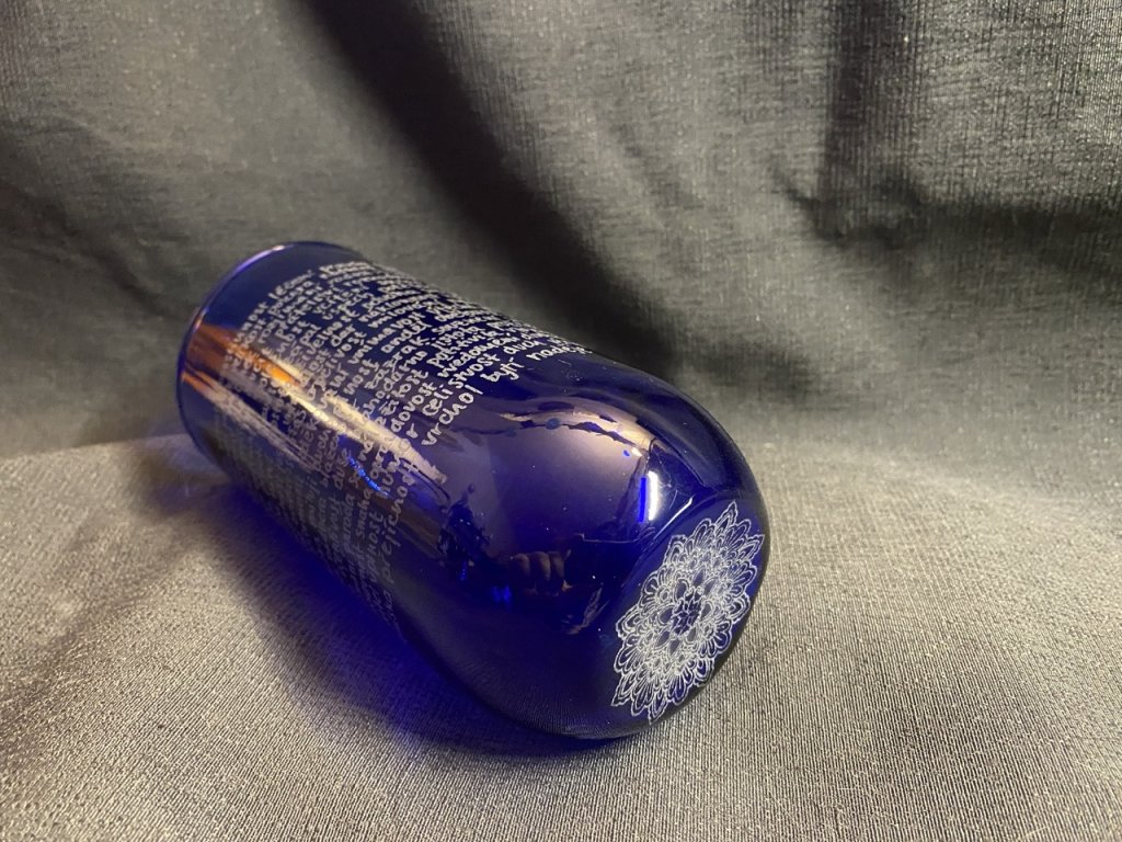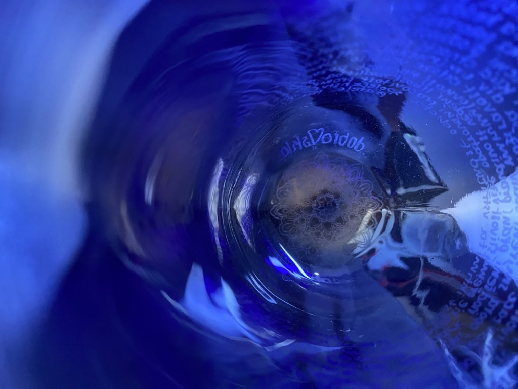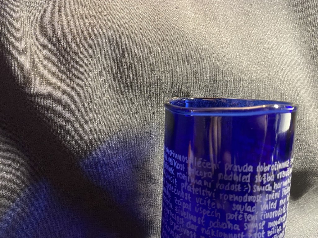 Toto je jedinečná sestra, dvojče. V podmanivě modré, maximem slov (222) pogravírované sklence s metatronem na dně se skrývá veliká síla.
