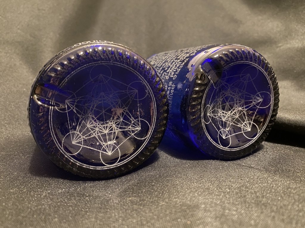 Vyrobeno 22.2. 2026. Stejné mocné dno - metatronova krychle. Mají různý objem (výšku) - cca 0,3l a 0,25l.